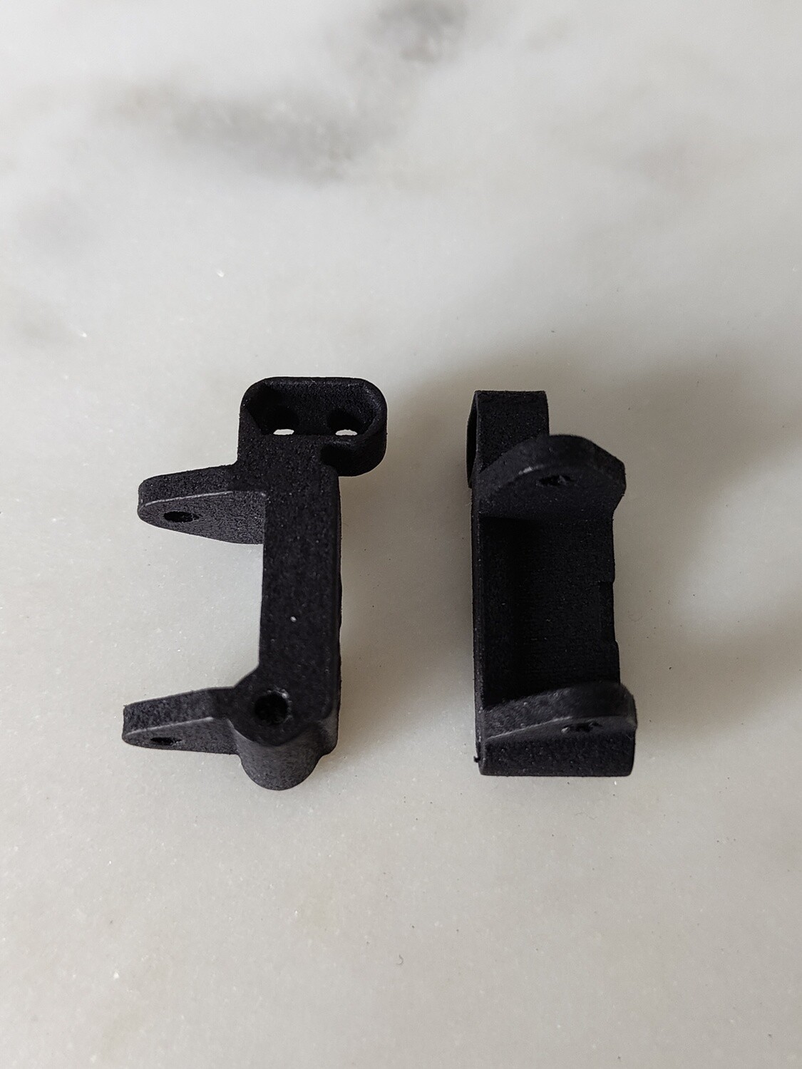 3D printed replacement XX CR front uprights. These are 25° castor. Hingepin holes are hand reamed to provide a better fit.